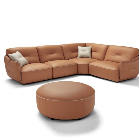 Lux je modulární systém s charakteristickými, zakřivenými a lineárními prvky. Lehké švy definují měkké tvary, zatímco kontrastní profil zdůrazňuje ladné linie konstrukce. Ladící taburet doplňuje projekt, který spojuje funkčnost, ergonomii a styl.