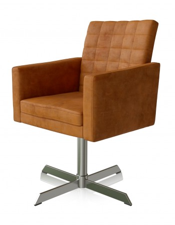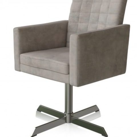 Jídelní křeslo s otočnou základnou, pohodlné a funkční . Broušená umělá kůže. K dispozici ve světle šedé, tmavě šedé a měděné barvě.