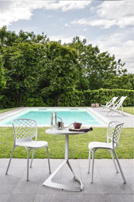 Jídelní židle moderního designu vhodná pro veřejné prostory i domácnosti. Celoplastové provedení.